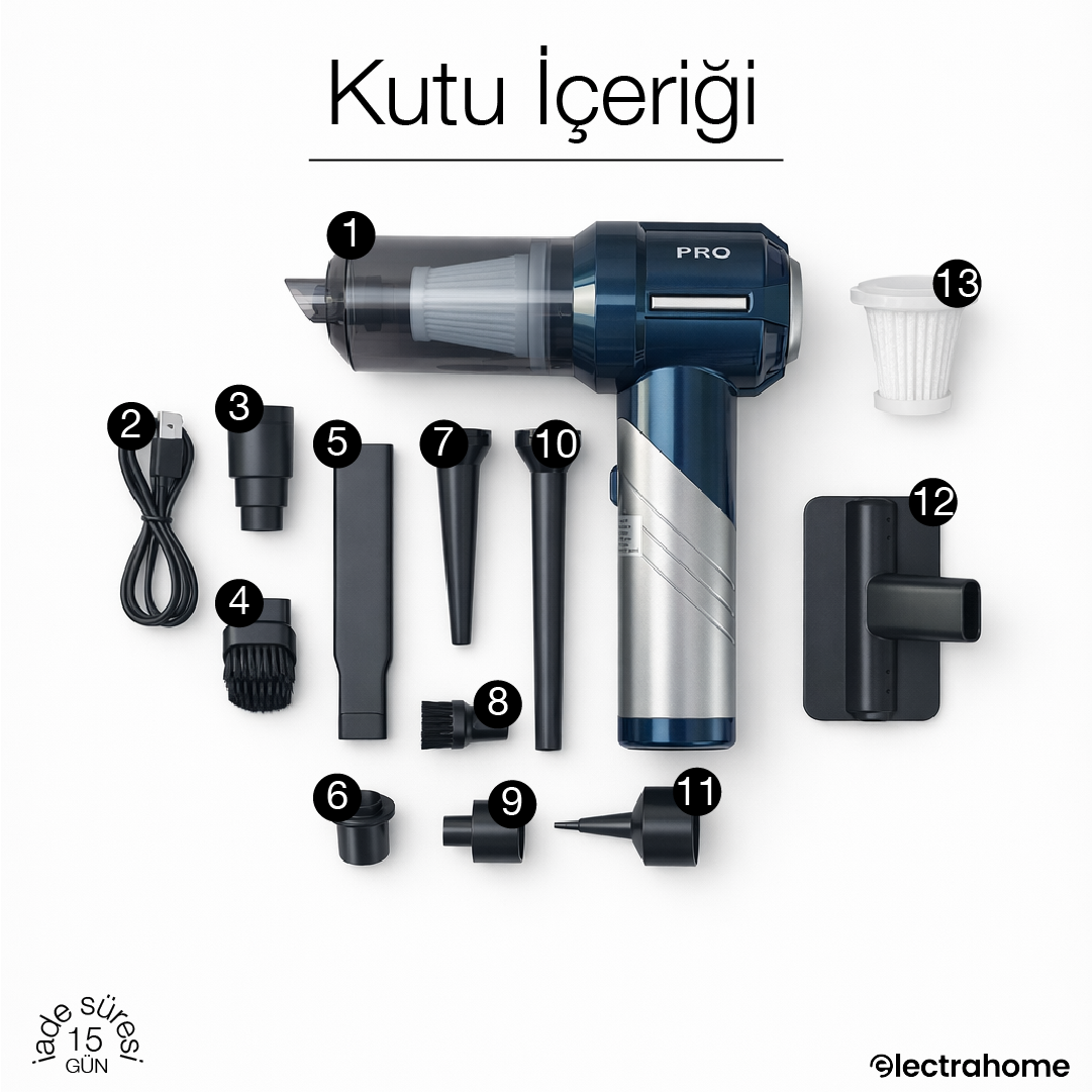 ✔ Araç içi tam temizlik için optimize edilmiş batarya